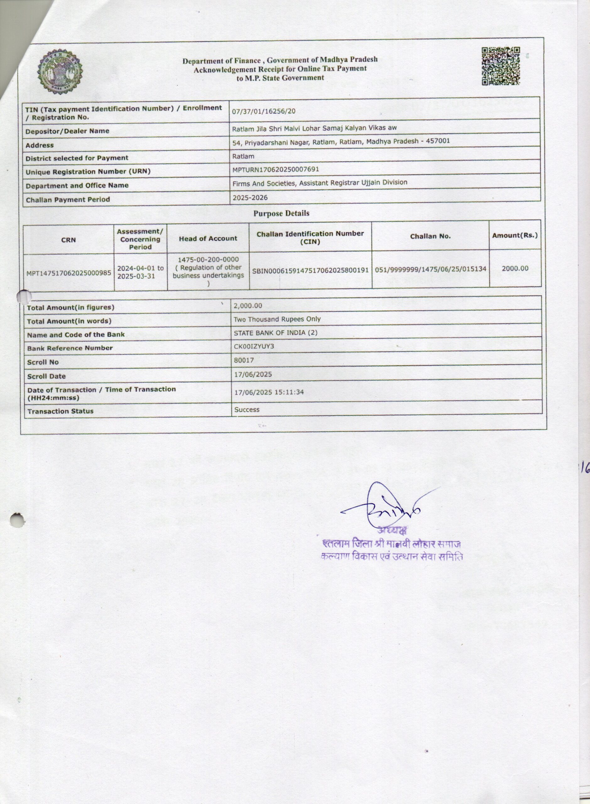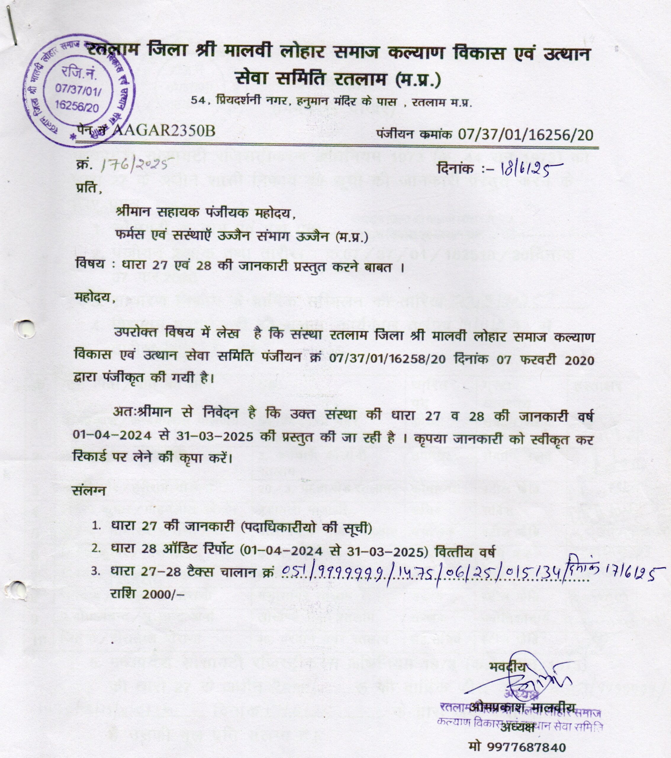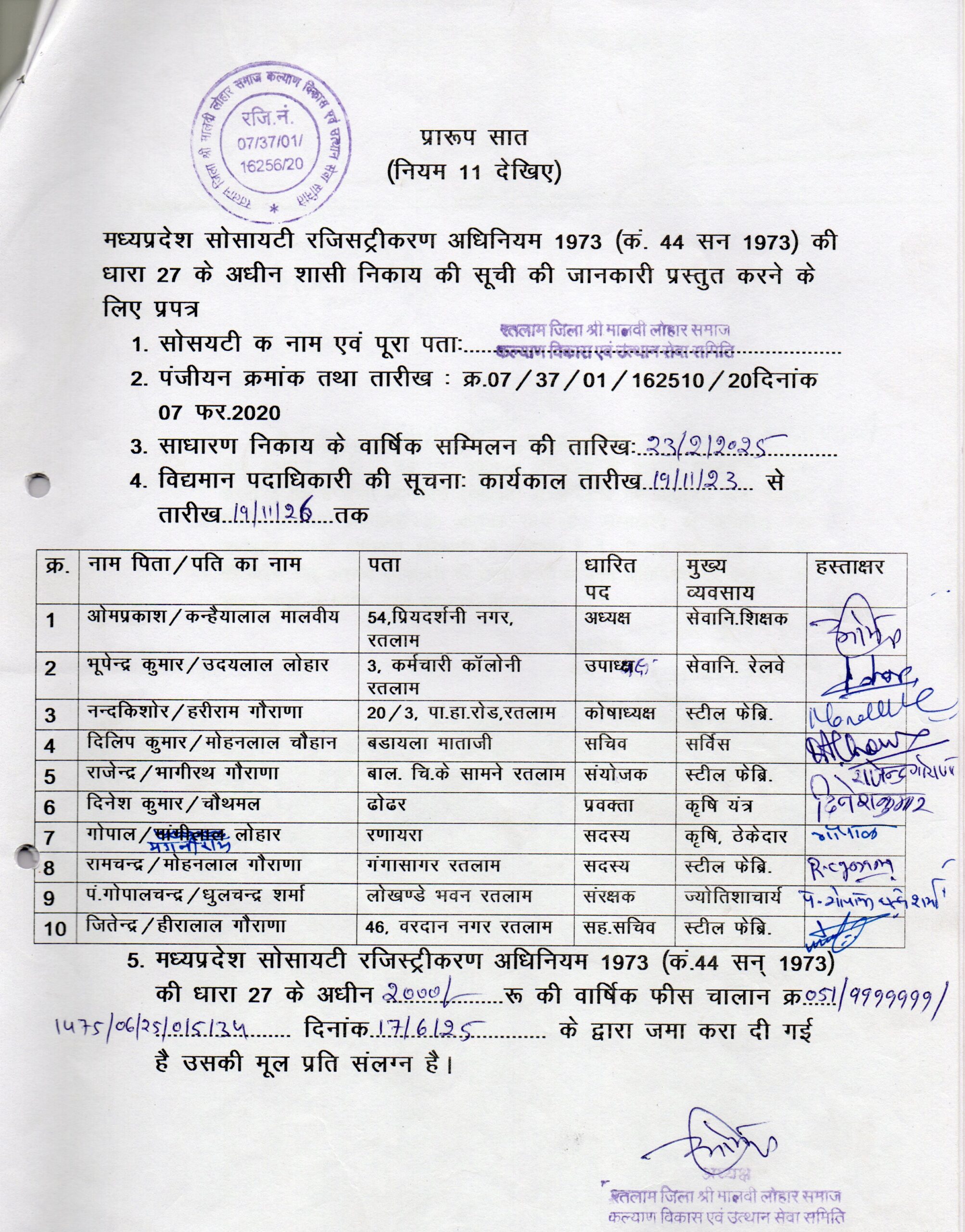 Ratlam Jila Shree Malvi Lohar Samaj Kalyan Vikas Evam Uthan Sewa Samiti